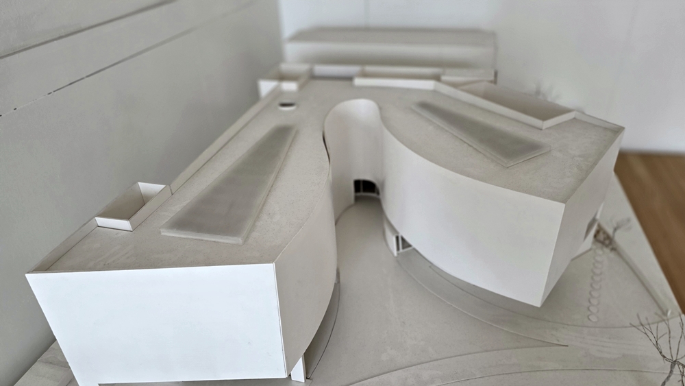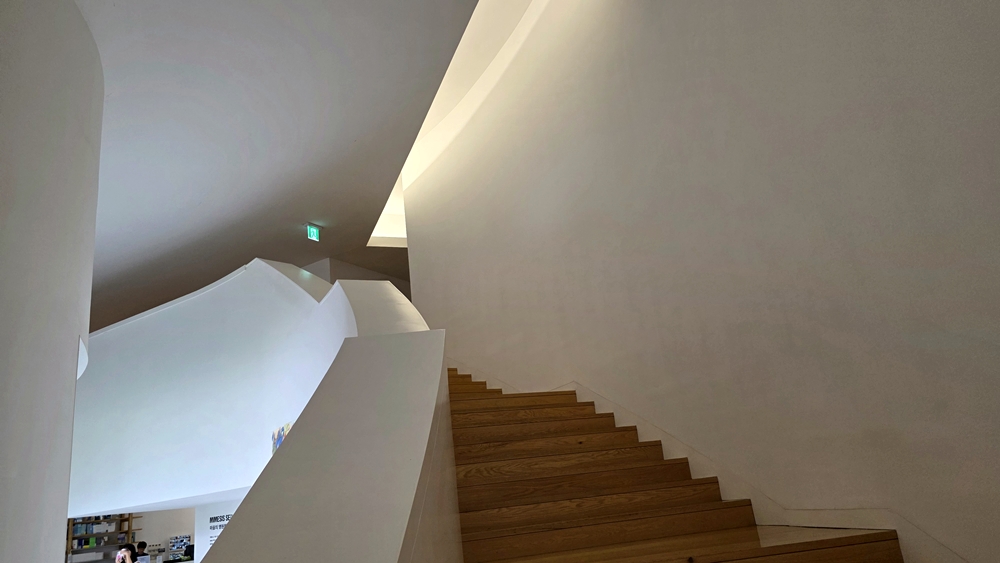 콘크리트로 지은 빛의 대형물이란 이 조형물은 건축물은 안 마당에 들어서면 곡선면이 눈길을 사로잡는다.