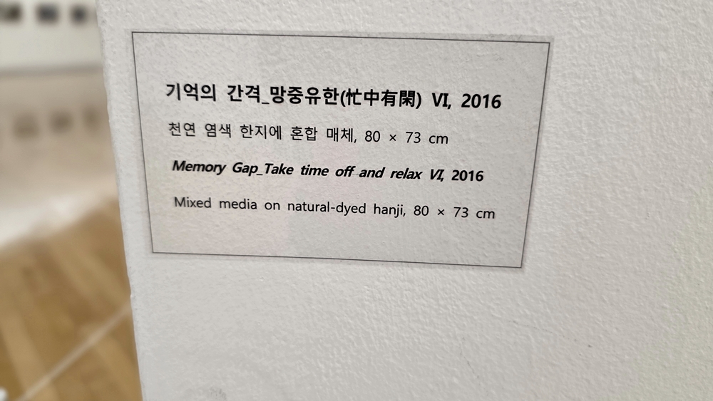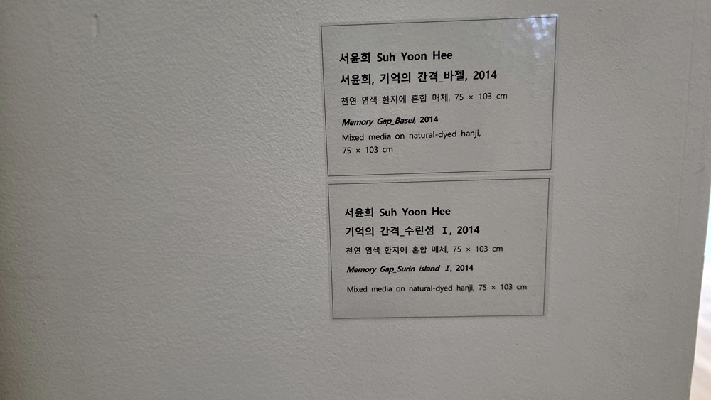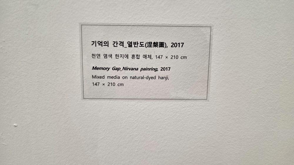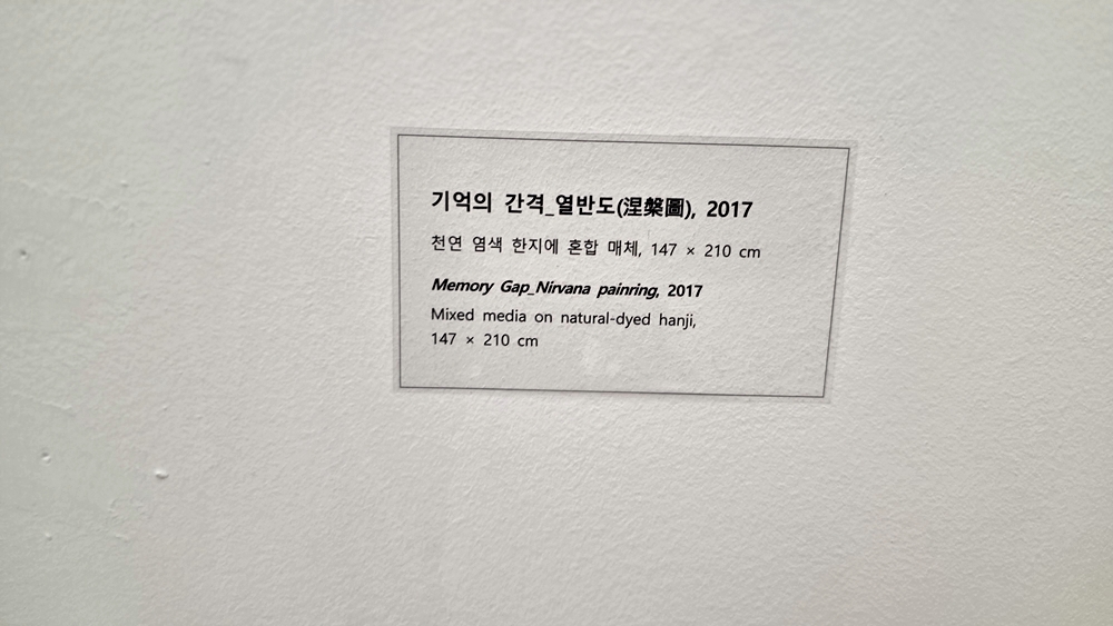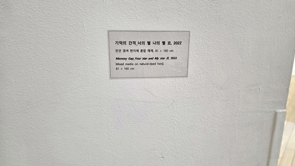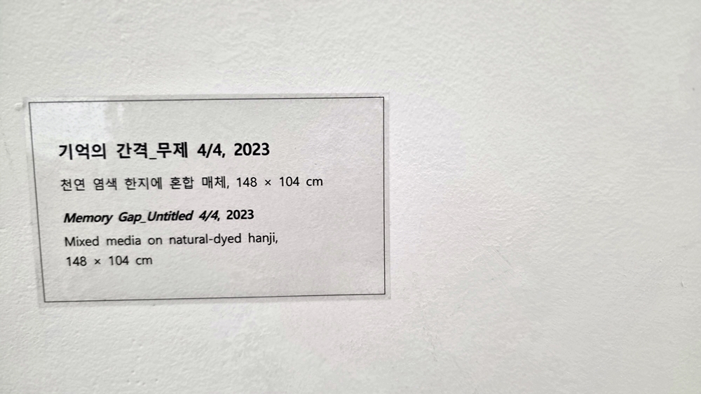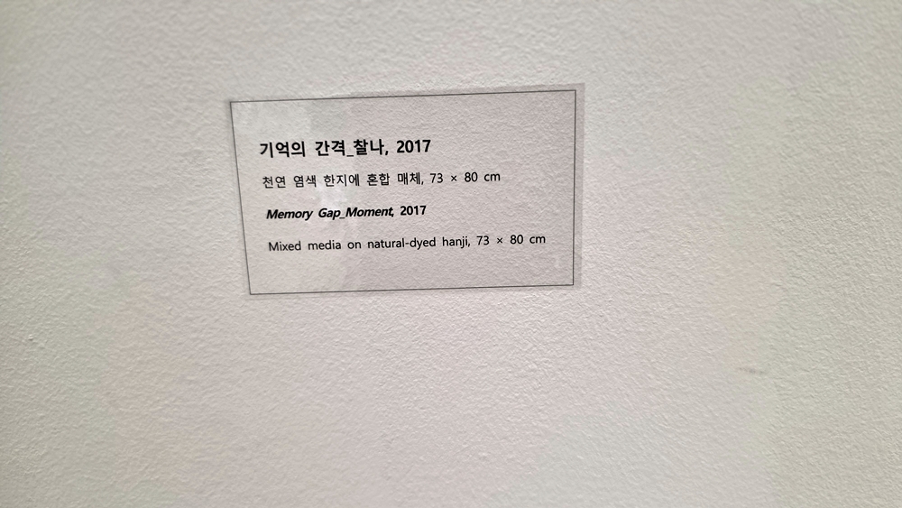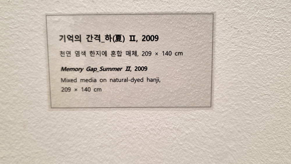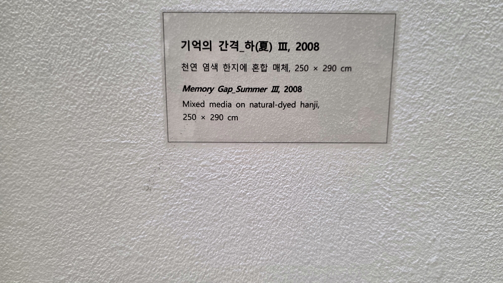 작가는 여러 지역을 다니며 자연의 현장에서 찾아낸 소재들을 종이와 천으로 된 바닥에 스며들게 하는 퍼포먼스를 한다. 이후 작가는 평면에 남겨진 그 흔적들을 오래 두고 바라보며 그 위에 무언가를 더할지 혹은 더하지 않을지를 결정하는 과정을 거쳐 작업을 완성한다, 너무 방대한 대작들로 제목부터가 난해하다