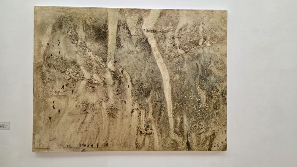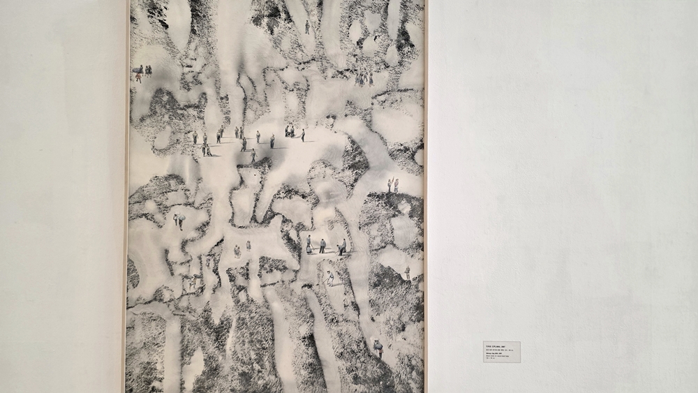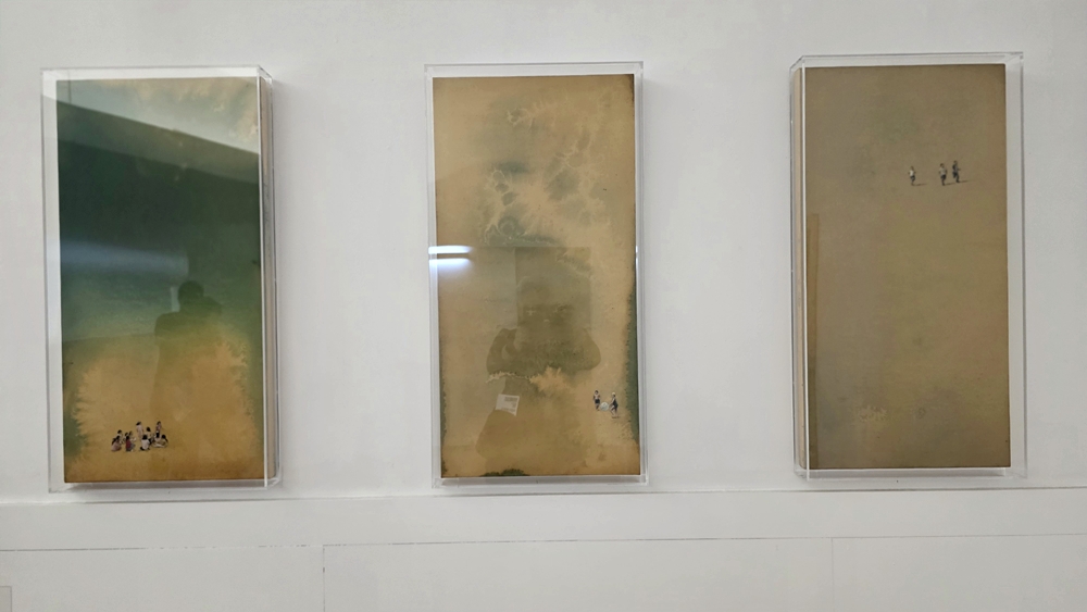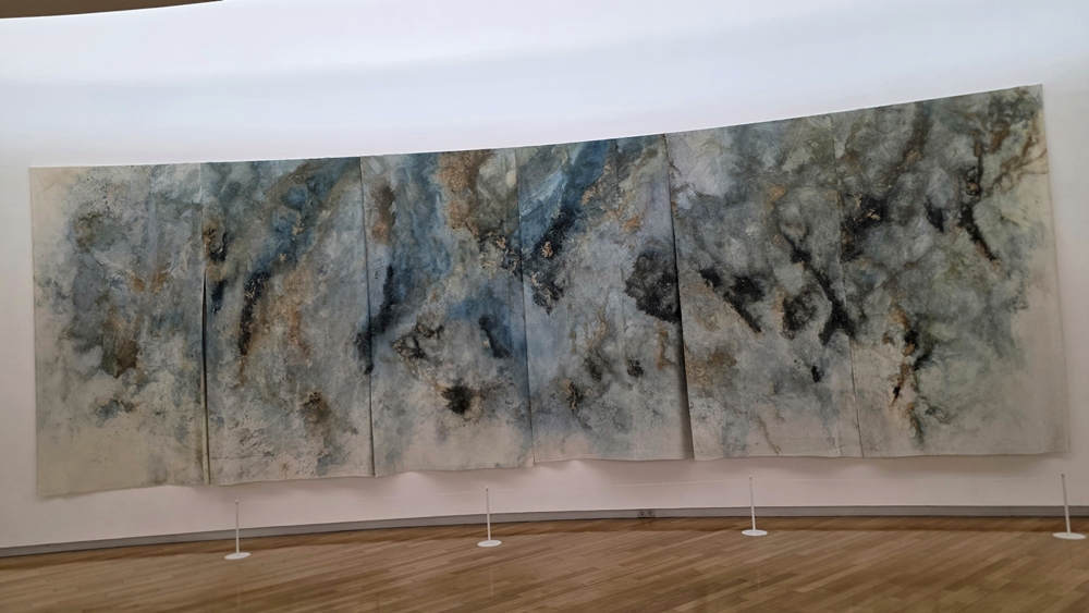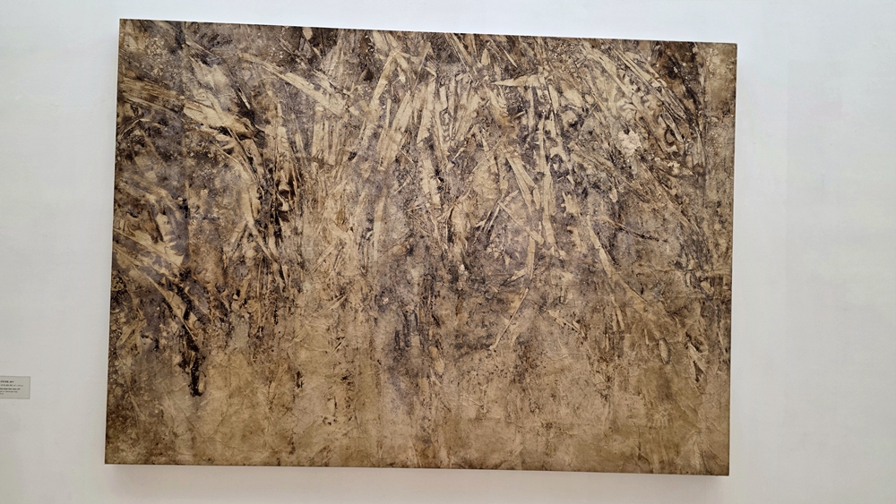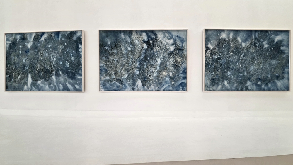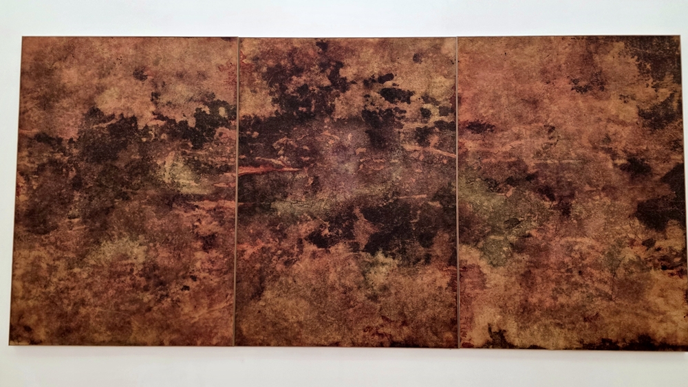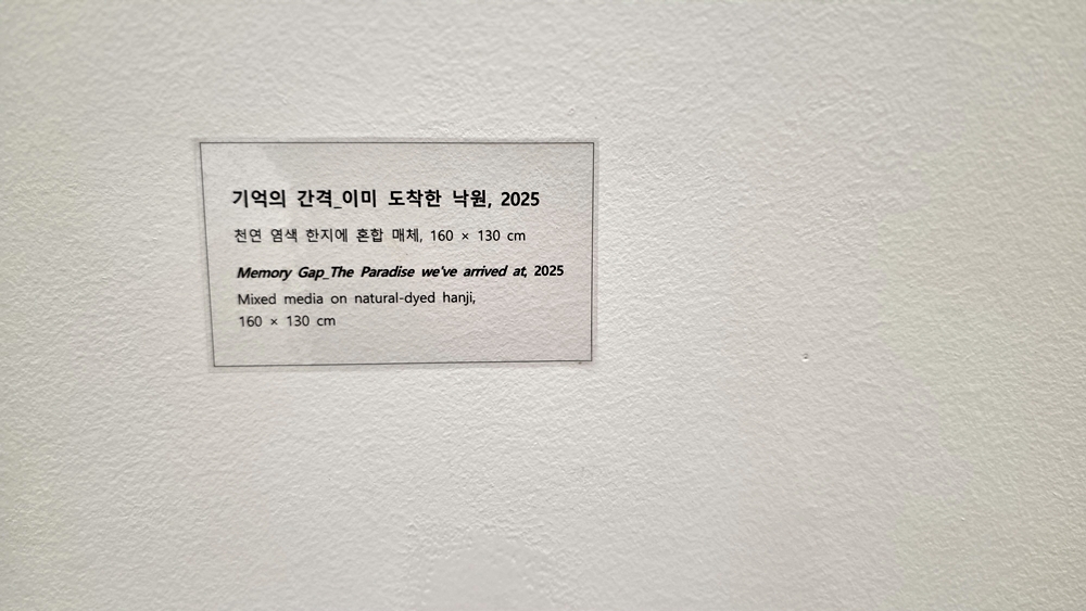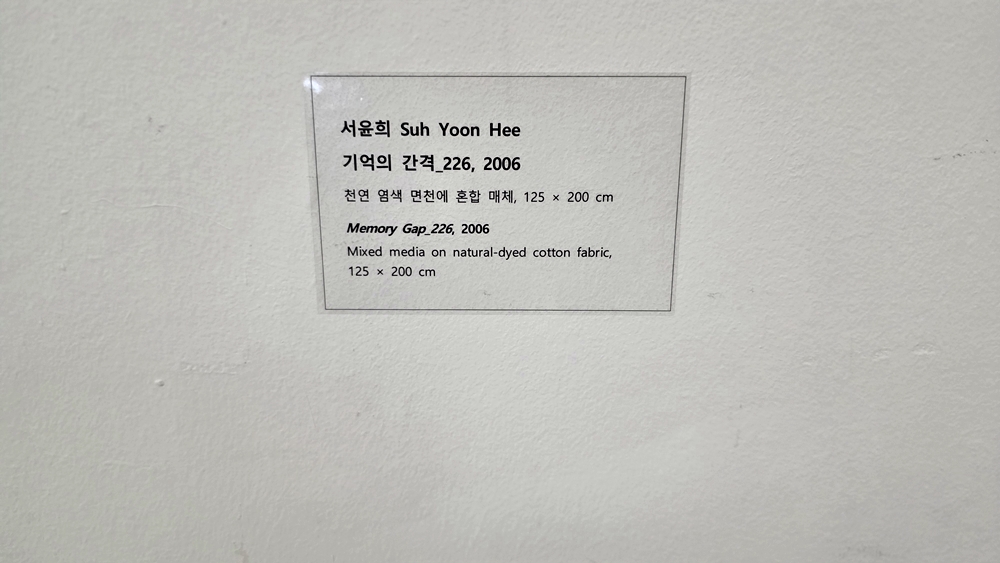 작가는 여러 지역을 다니며 자연의 현장에서 찾아낸 소재들을 종이와 천으로 된 바닥에 스며들게 하는 퍼포먼스를 한다. 이후 작가는 평면에 남겨진 그 흔적들을 오래 두고 바라보며 그 위에 무언가를 더할지 혹은 더하지 않을지를 결정하는 과정을 거쳐 작업을 완성한다, 너무 방대한 대작들로 제목부터가 난해하다