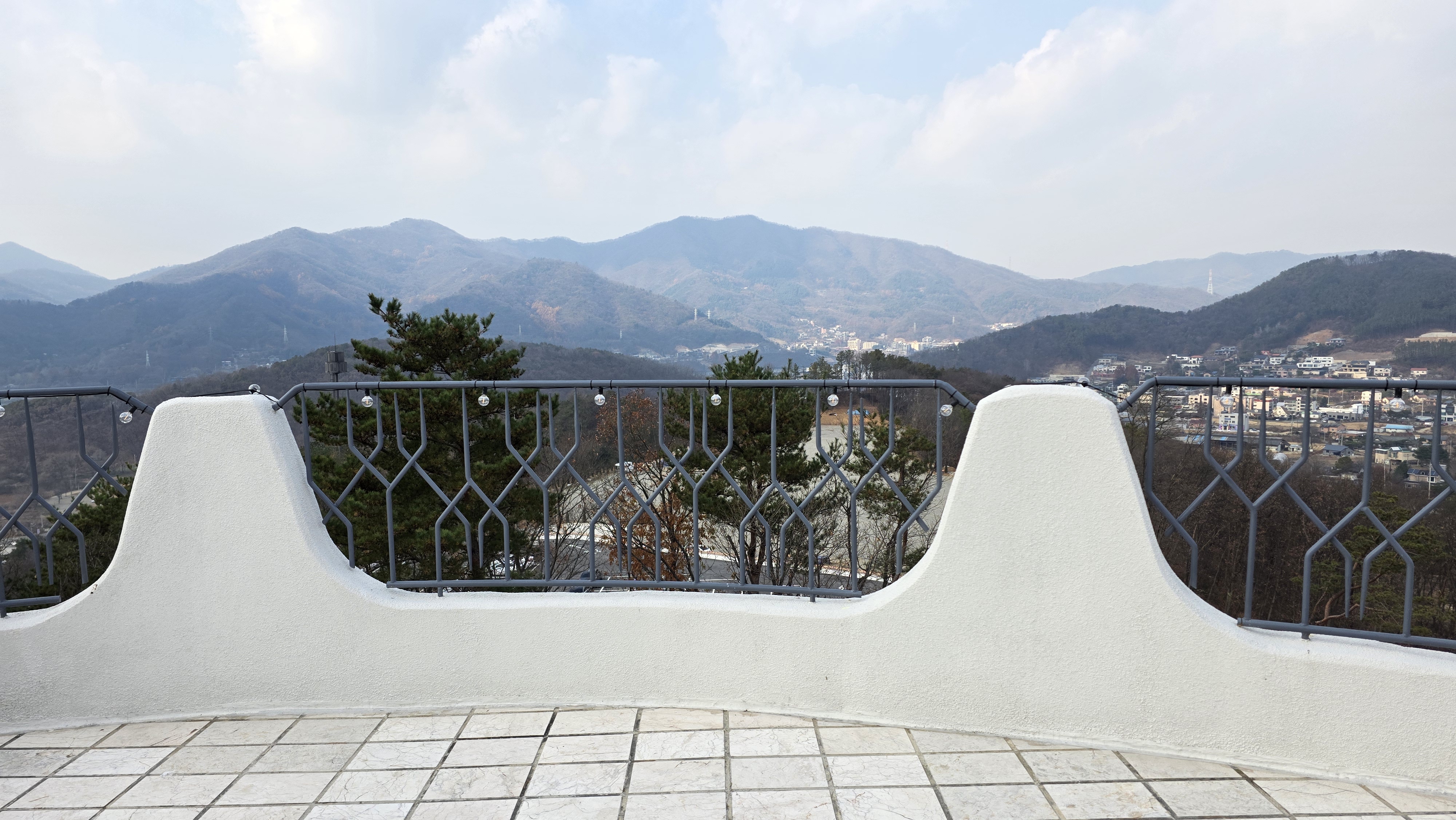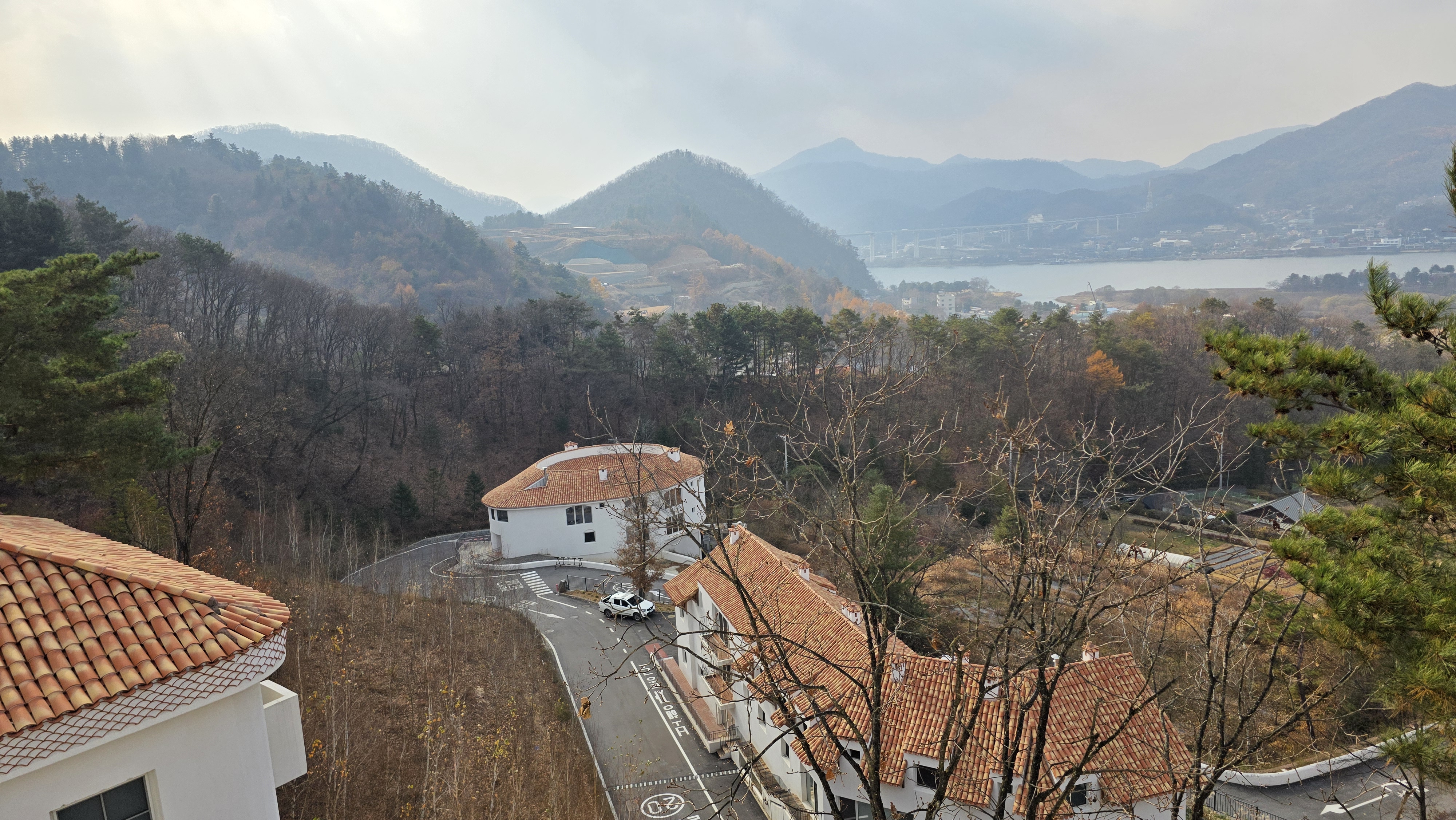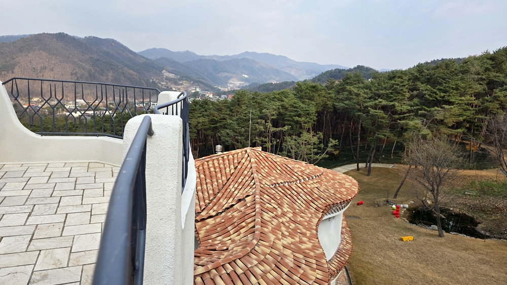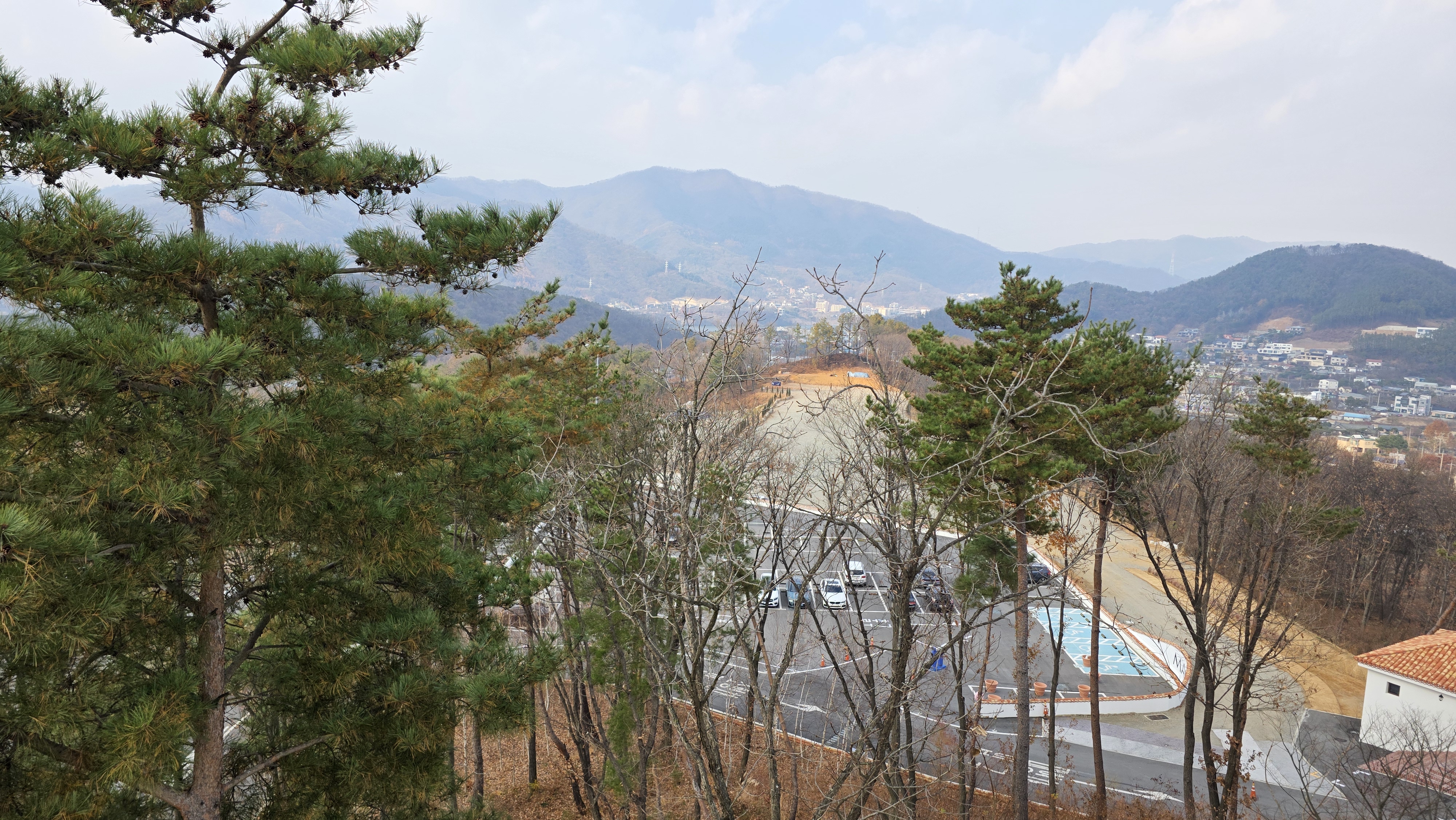 캣슬 건물 들어가며 동 편으로 보이는 먼 산 경이 한눈에 들어온다.