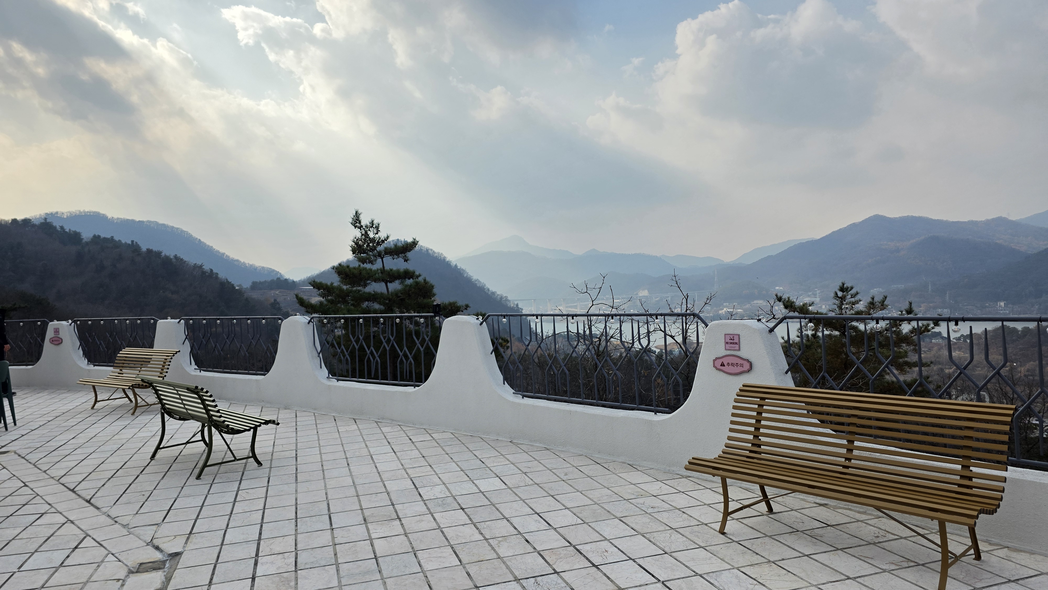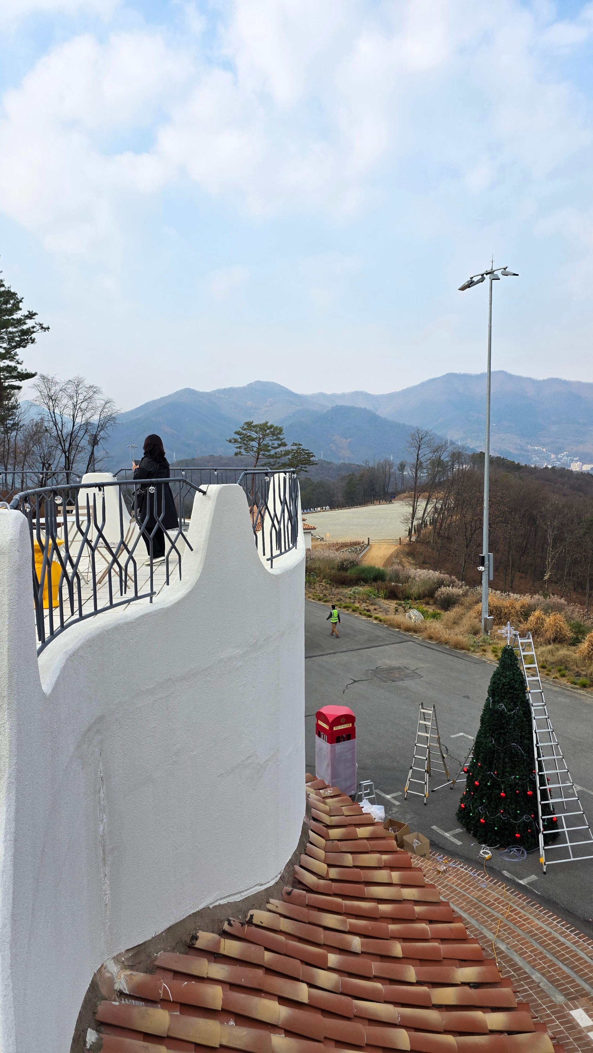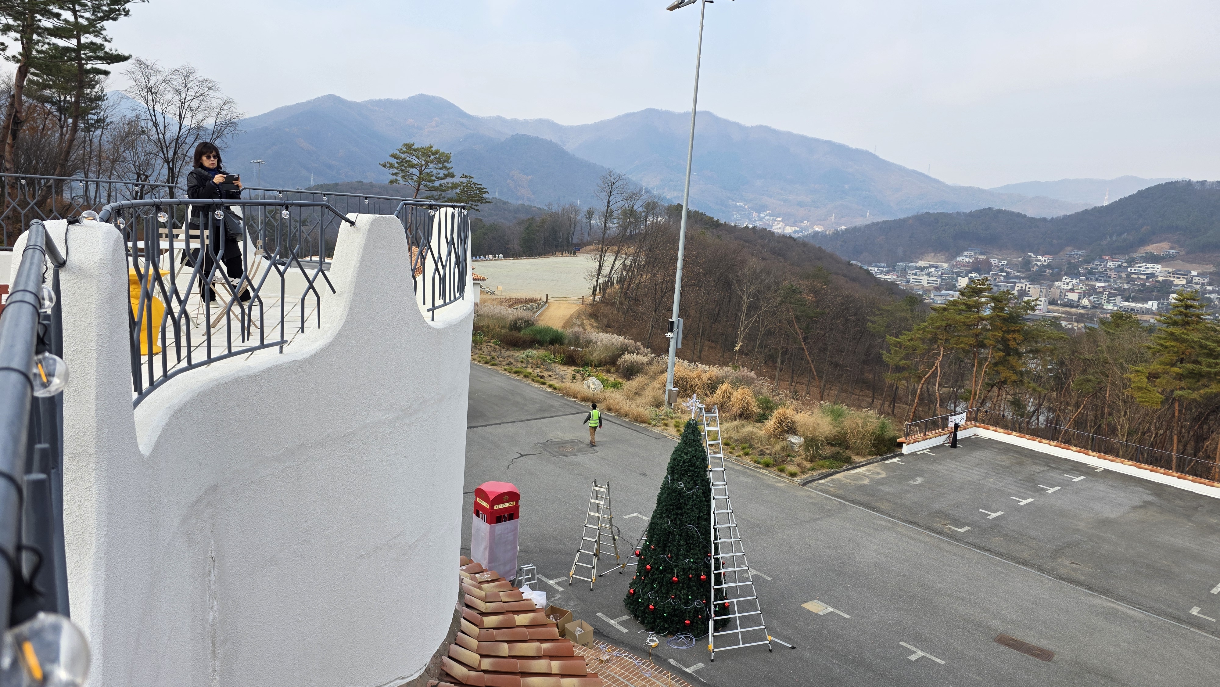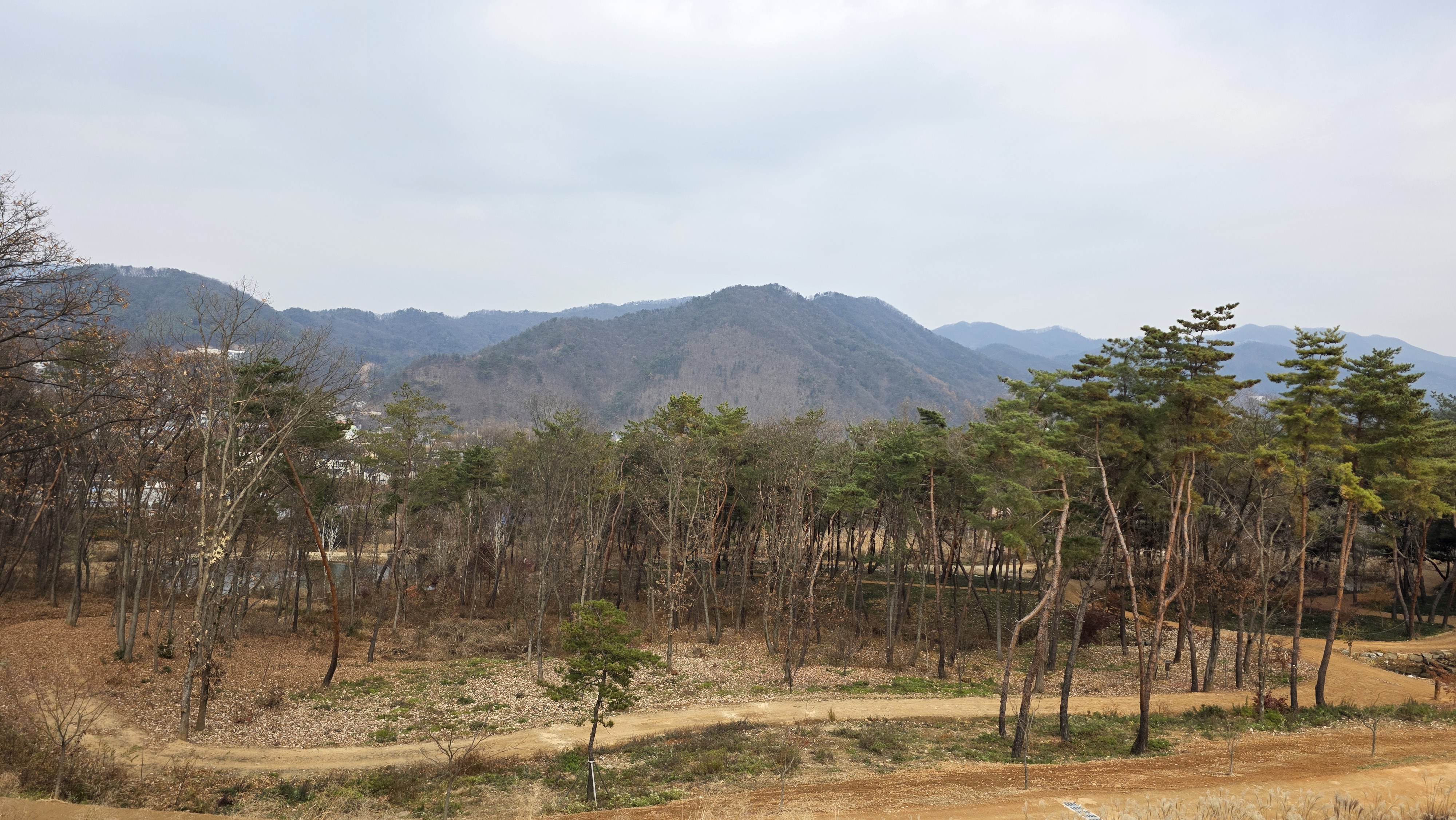 캣슬 건물 들어가며 동 편으로 보이는 먼 산 경이 한눈에 들어온다.