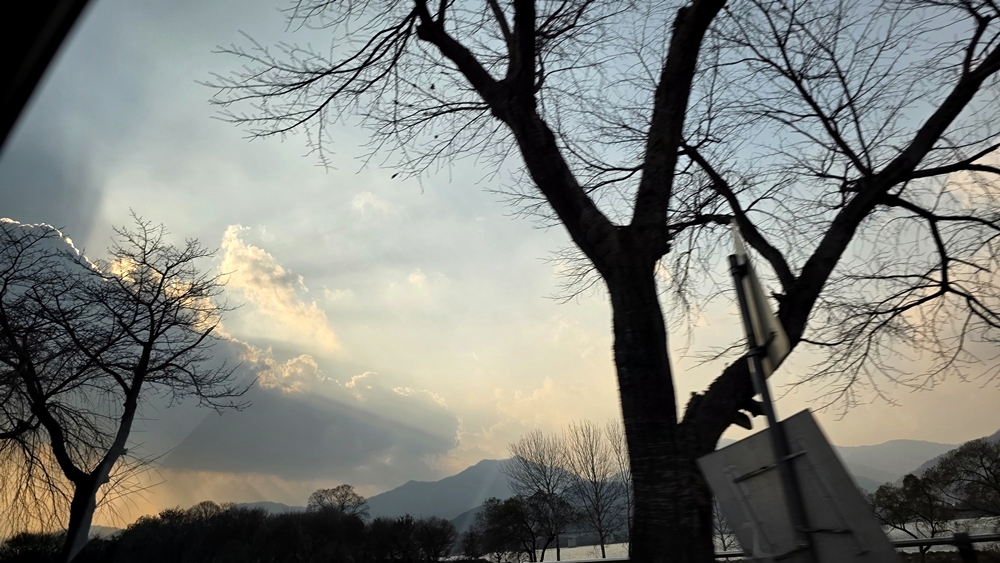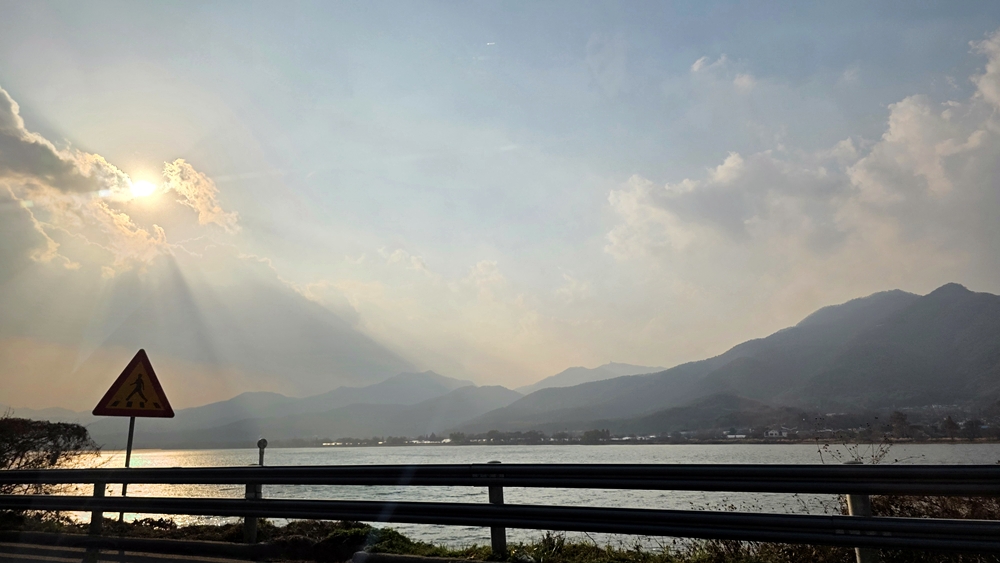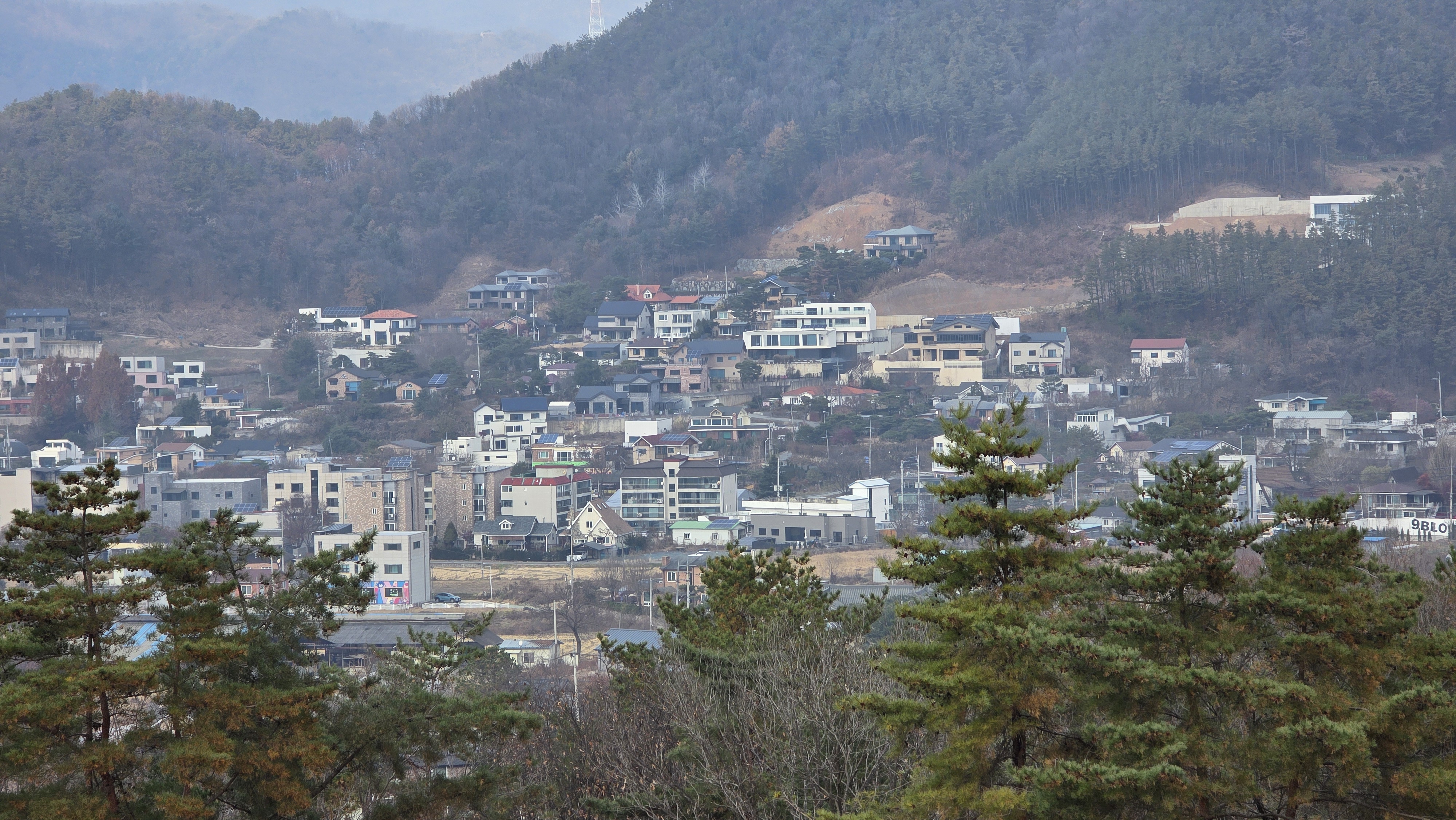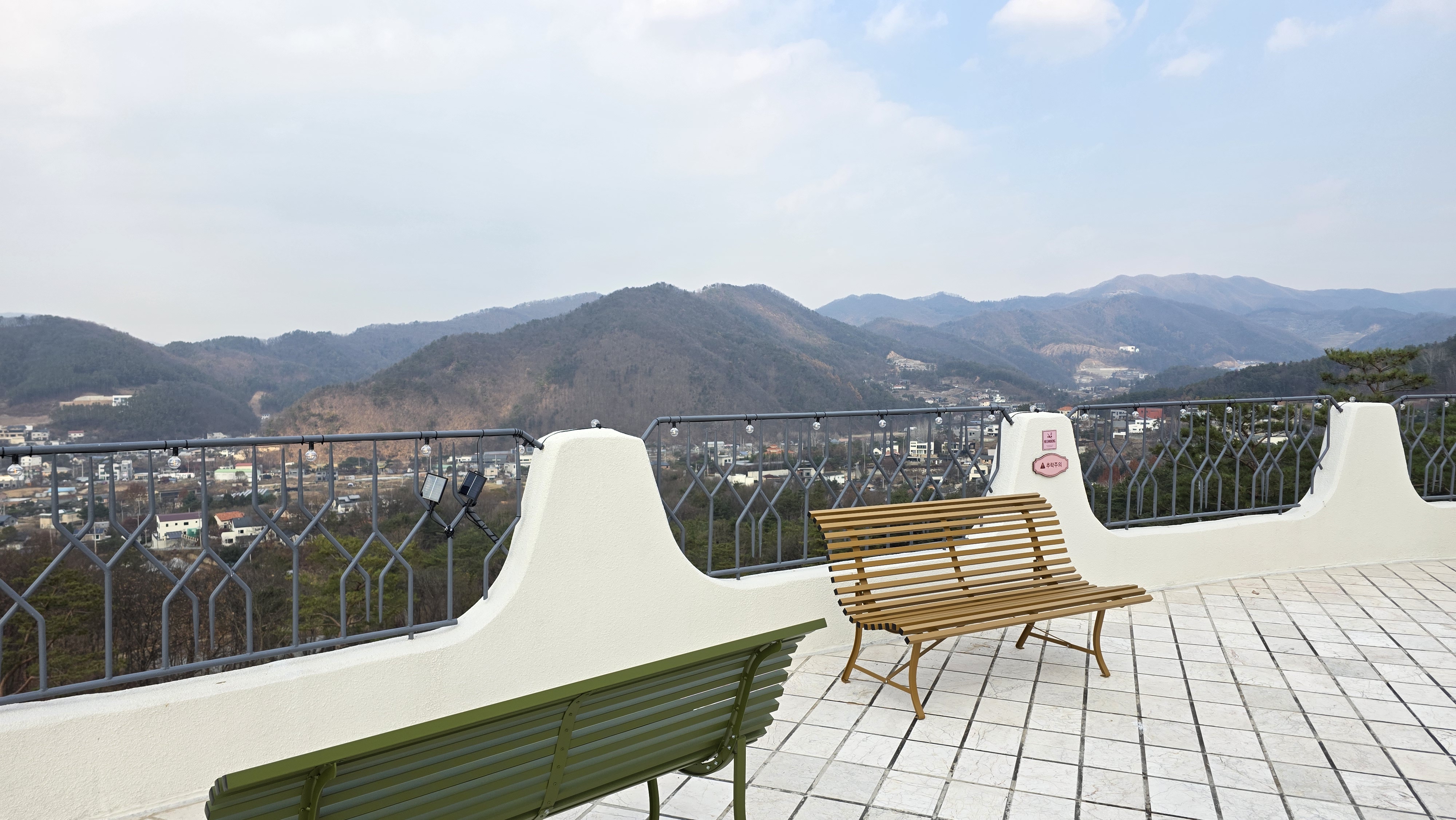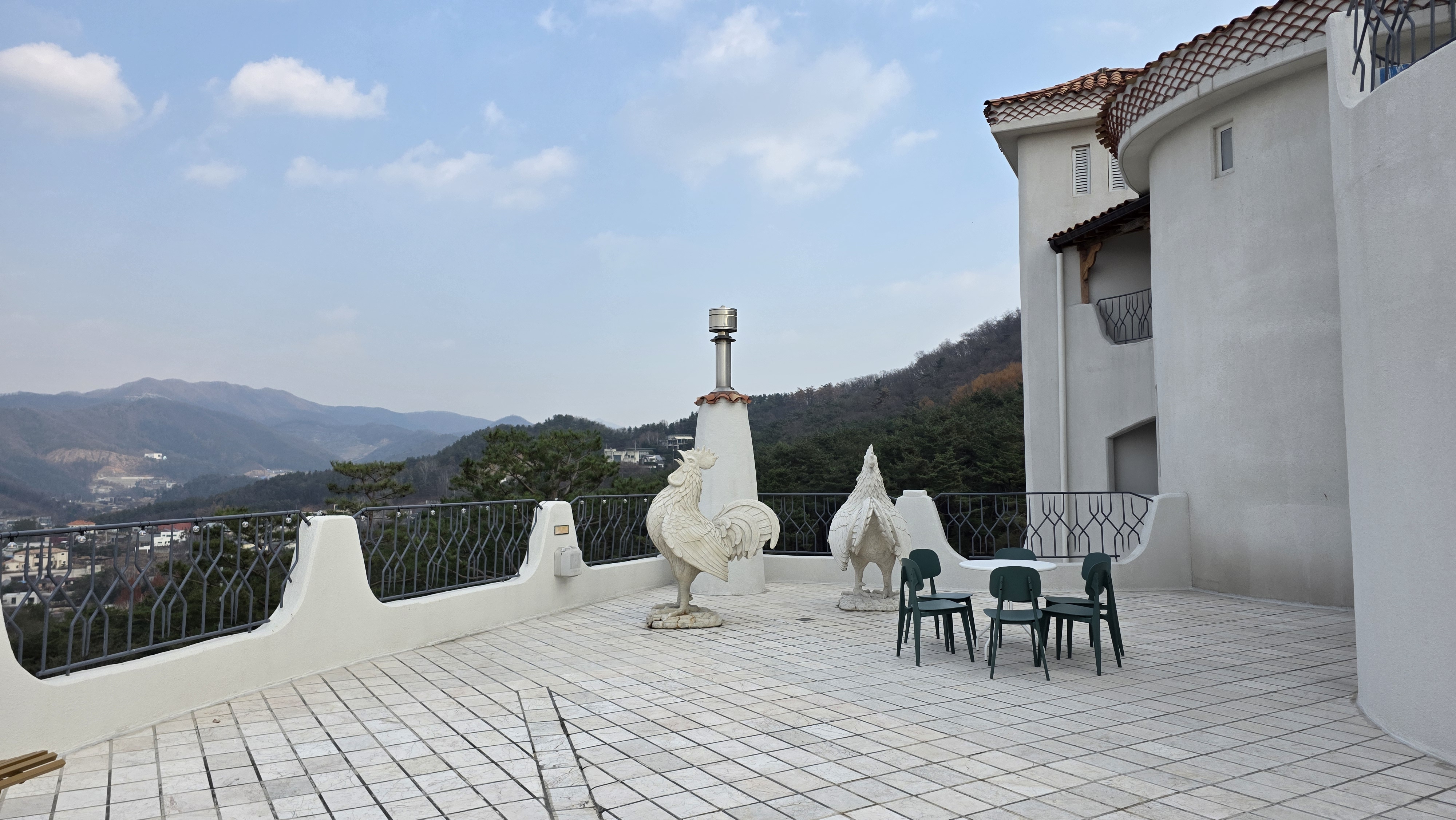 캣슬 건물 들어가며 동 편으로 보이는 먼 산 경이 한눈에 들어온다.