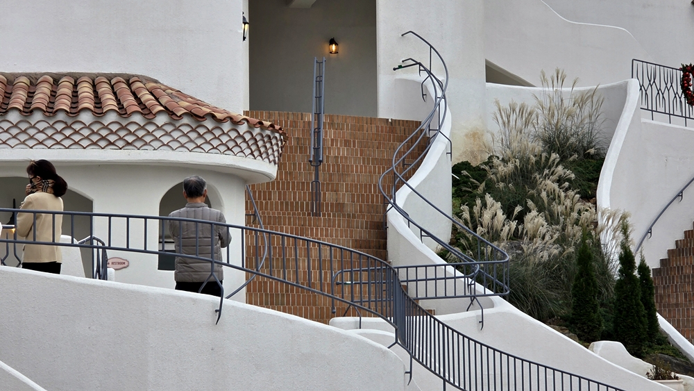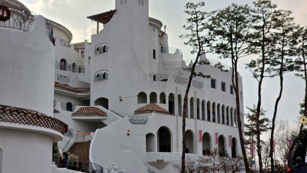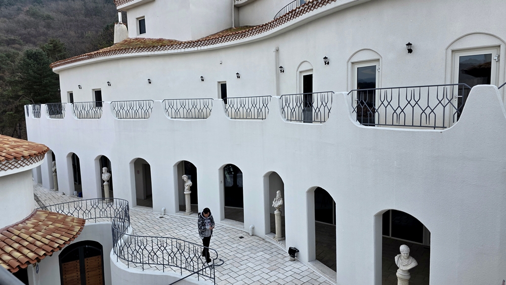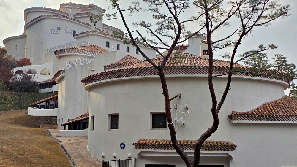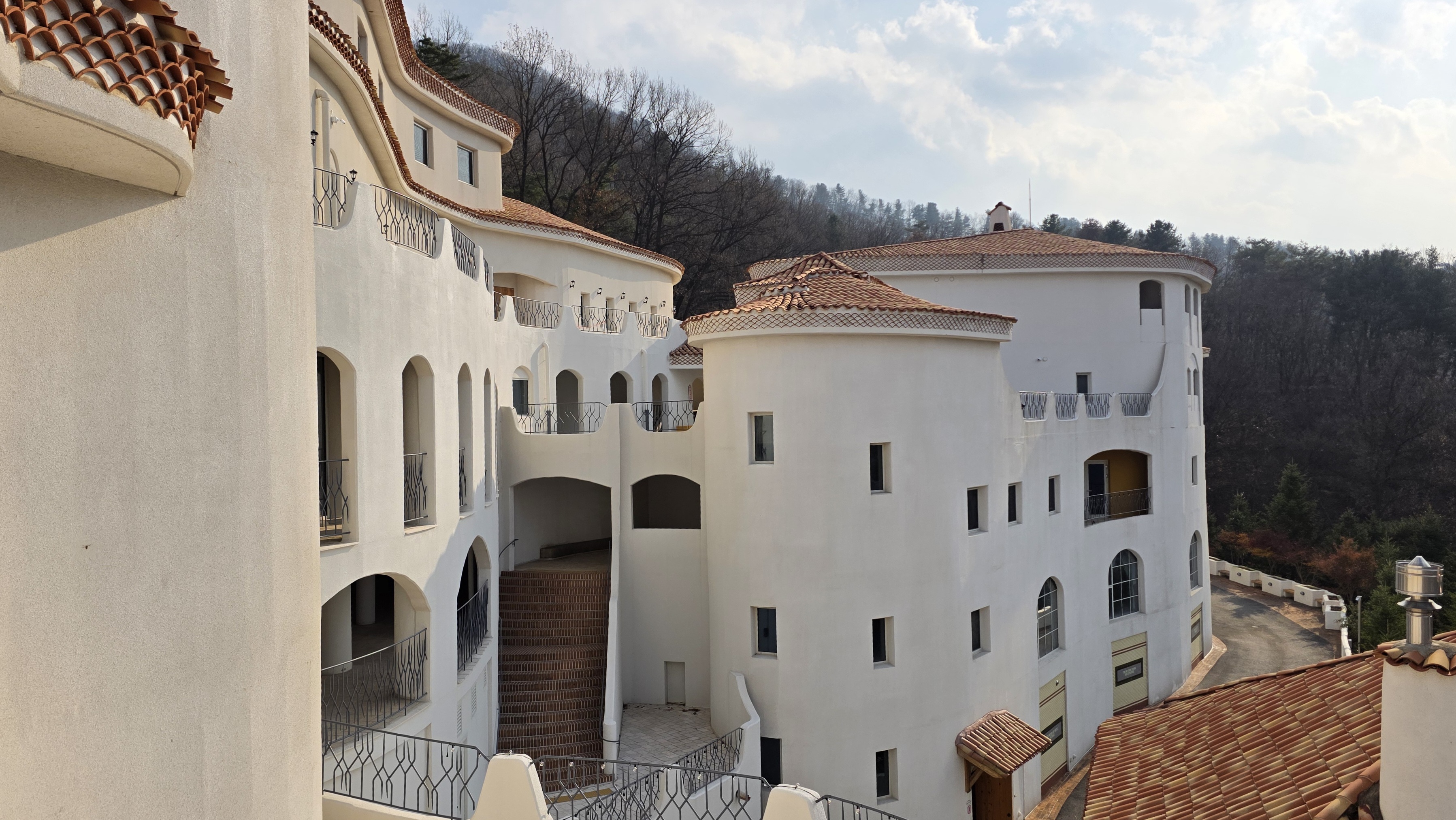 출입문을 통과하면 9년의 시간을 들여 느림의 건축을 완성했다는 하얀 성 이 나타난다. 이 건축물은 총 6채로 지어졌는데 들어가 보면 곡선으로 건물이 설계되어 미로처럼 이어져있다.