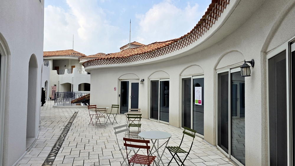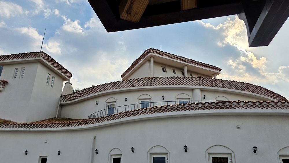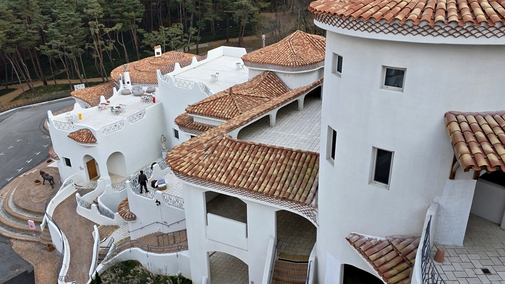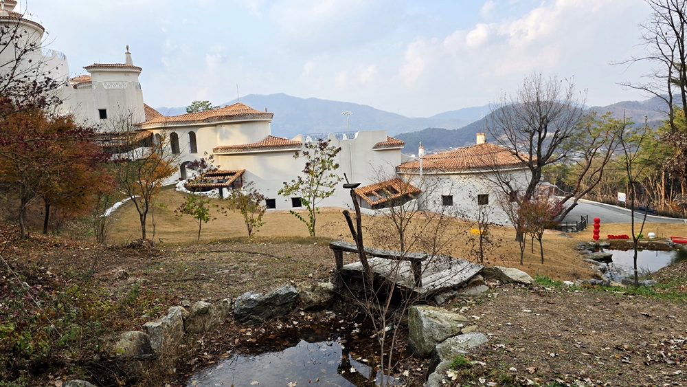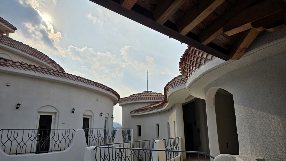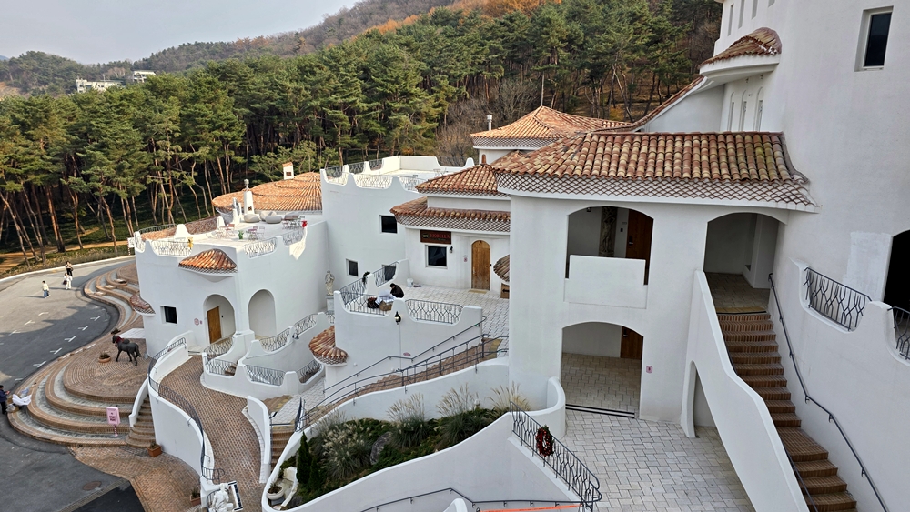 출입문을 통과하면 9년의 시간을 들여 느림의 건축을 완성했다는 하얀 성 이 나타난다. 이 건축물은 총 6채로 지어졌는데 들어가 보면 곡선으로 건물이 설계되어 미로처럼 이어져있다.