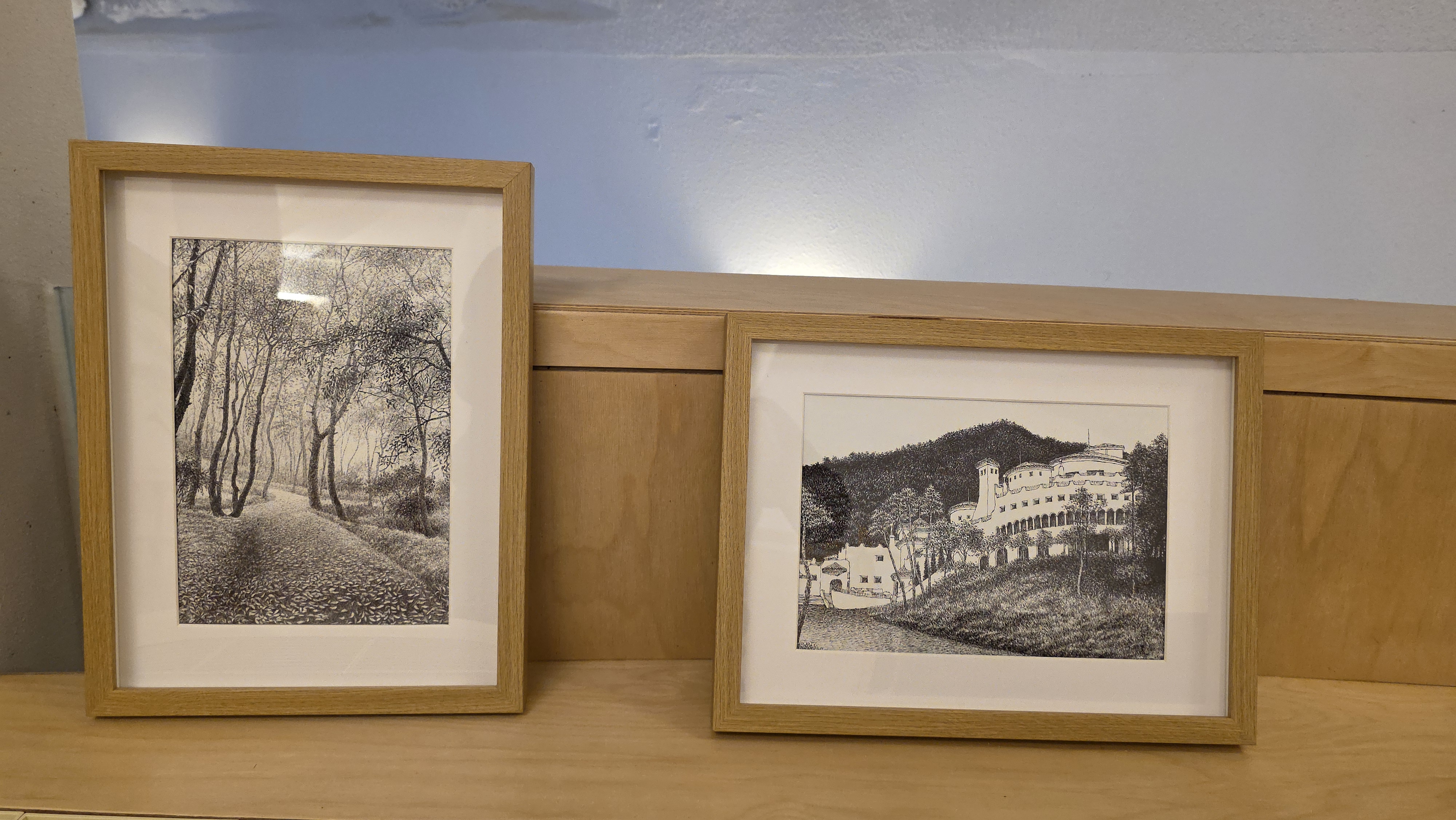 The Magu- Plivate Forest & Castle의 역사성을 지닌 홍경택 화가의 펜화가 전시 중이다