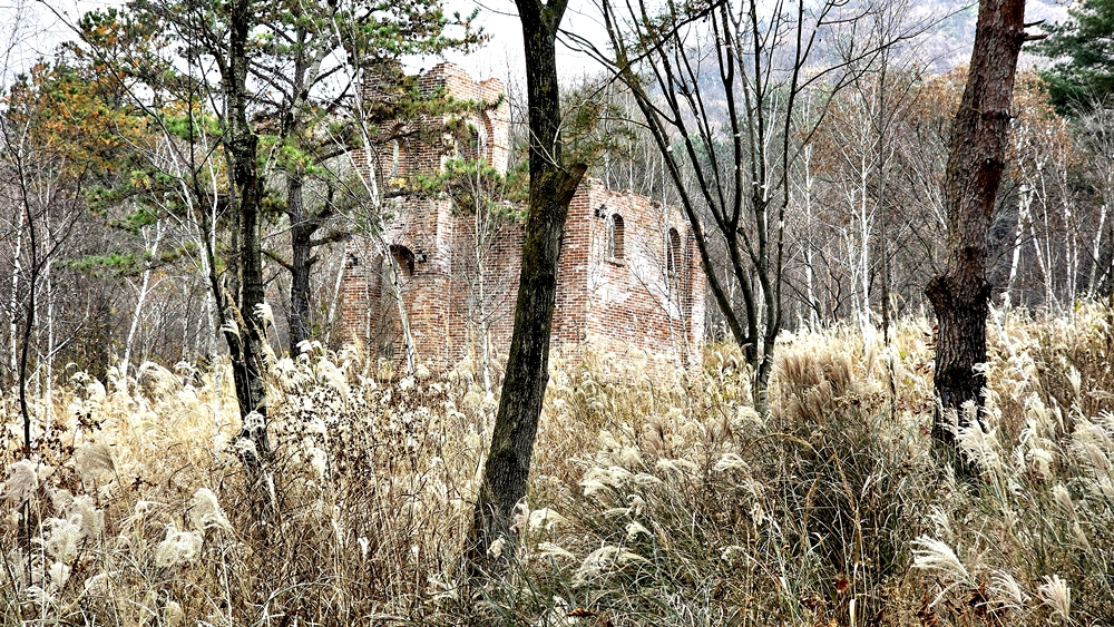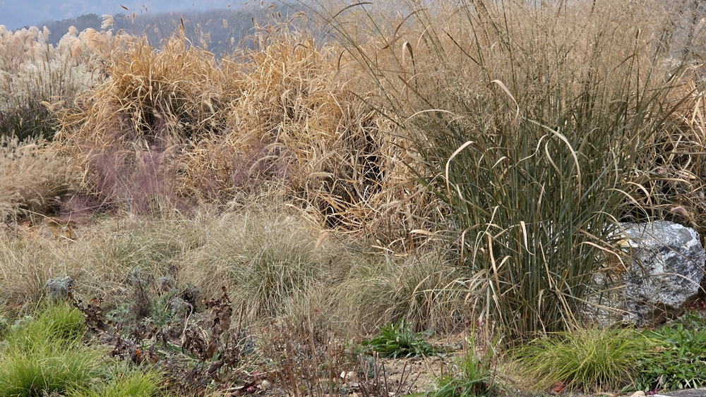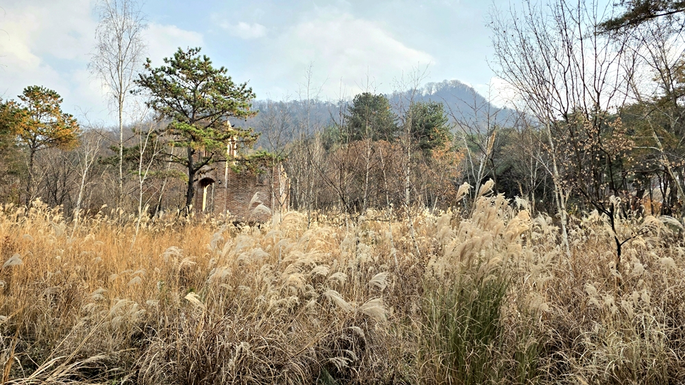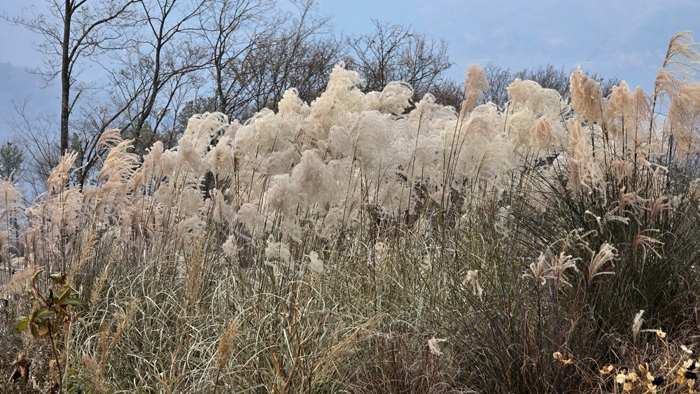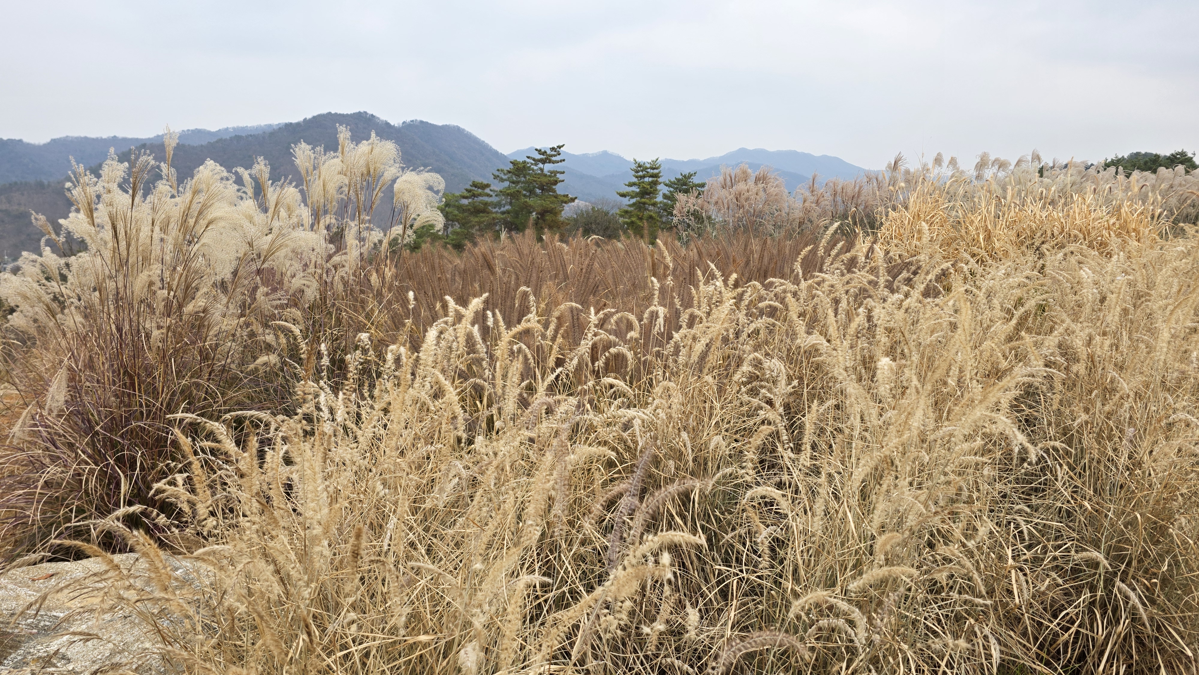 들어가는 길목에 우거진 억새가 주위의 산과 어우러져있다
