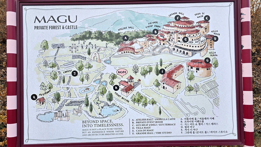 경기도 양평군 서종면 사랑재길 11-107 11만 펑 숲 속에 위치한 더 마구는 자연과 예술, 미식이 어우러진 복합문화 공간이다. 프라이빗 캐슬 앤 포레스트란 이름처럼 들어가는 입구부터 유럽의 휴양지 같은 분위기를 자아내는 예술 작품이다.