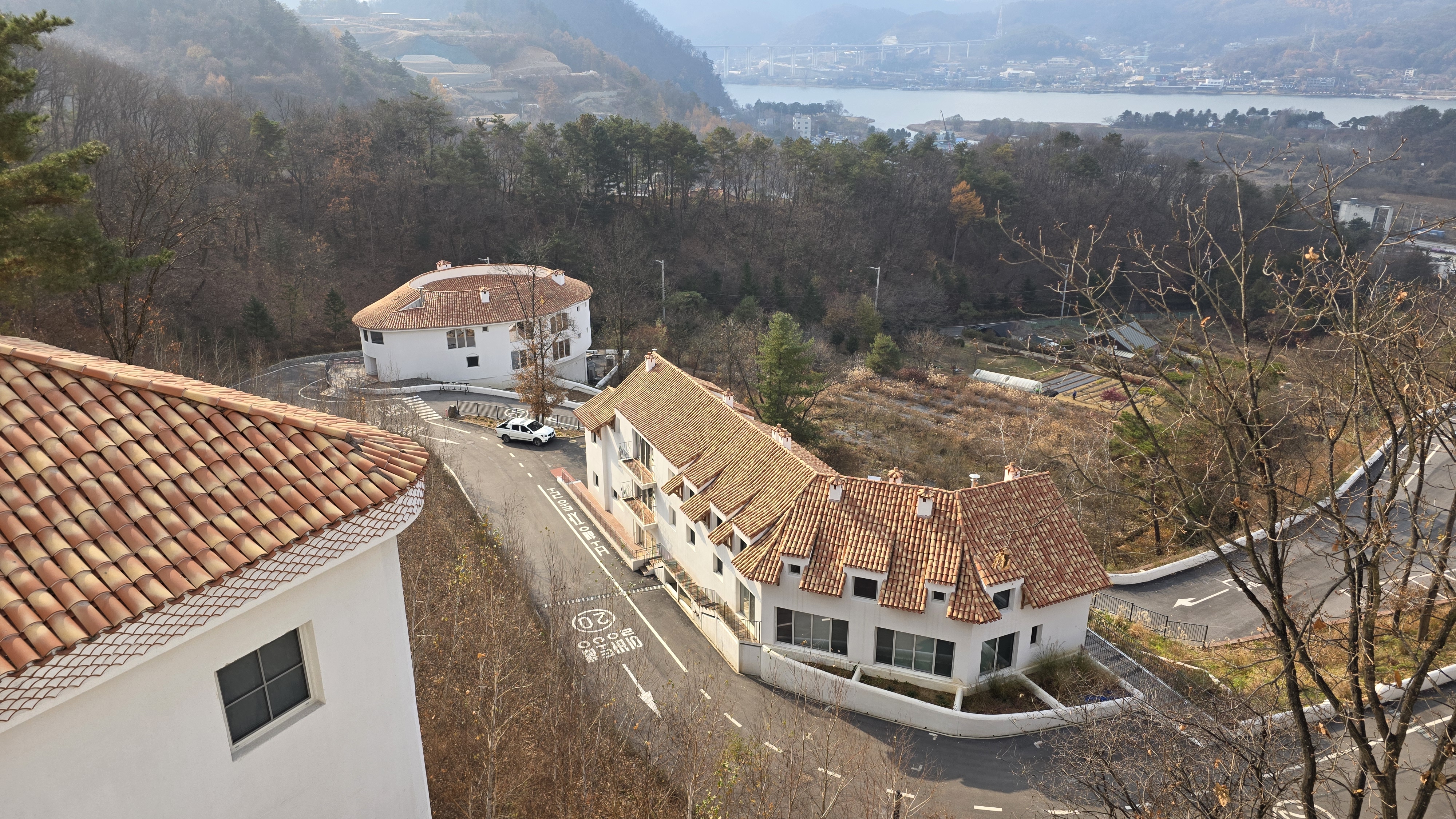 마구의 이국적인 지중해식 건축물은 곳곳이 스폿의 베경이다. 마구에서 바라본 북한강.