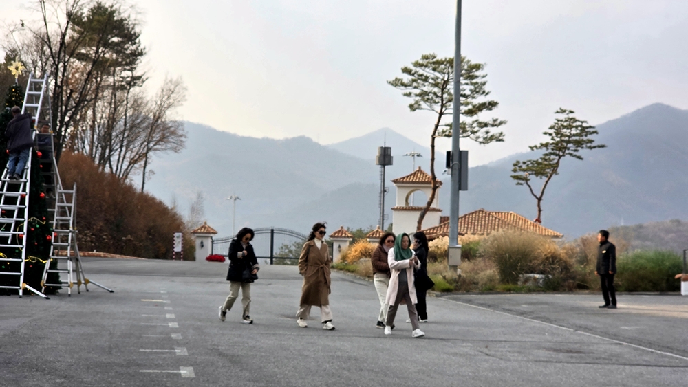 궁전 건물 전체가 카메라 앵글에 잡히지 않는다. 그래서 손님맞이 기능사가 단 한 곳의 위치를 안내하며 촬영의 수고를 해주고 있다